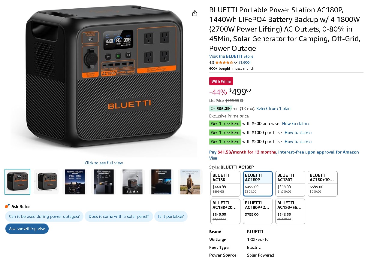 Secure the BLUETTI AC180P at an Unbeatable Price on Amazon.com