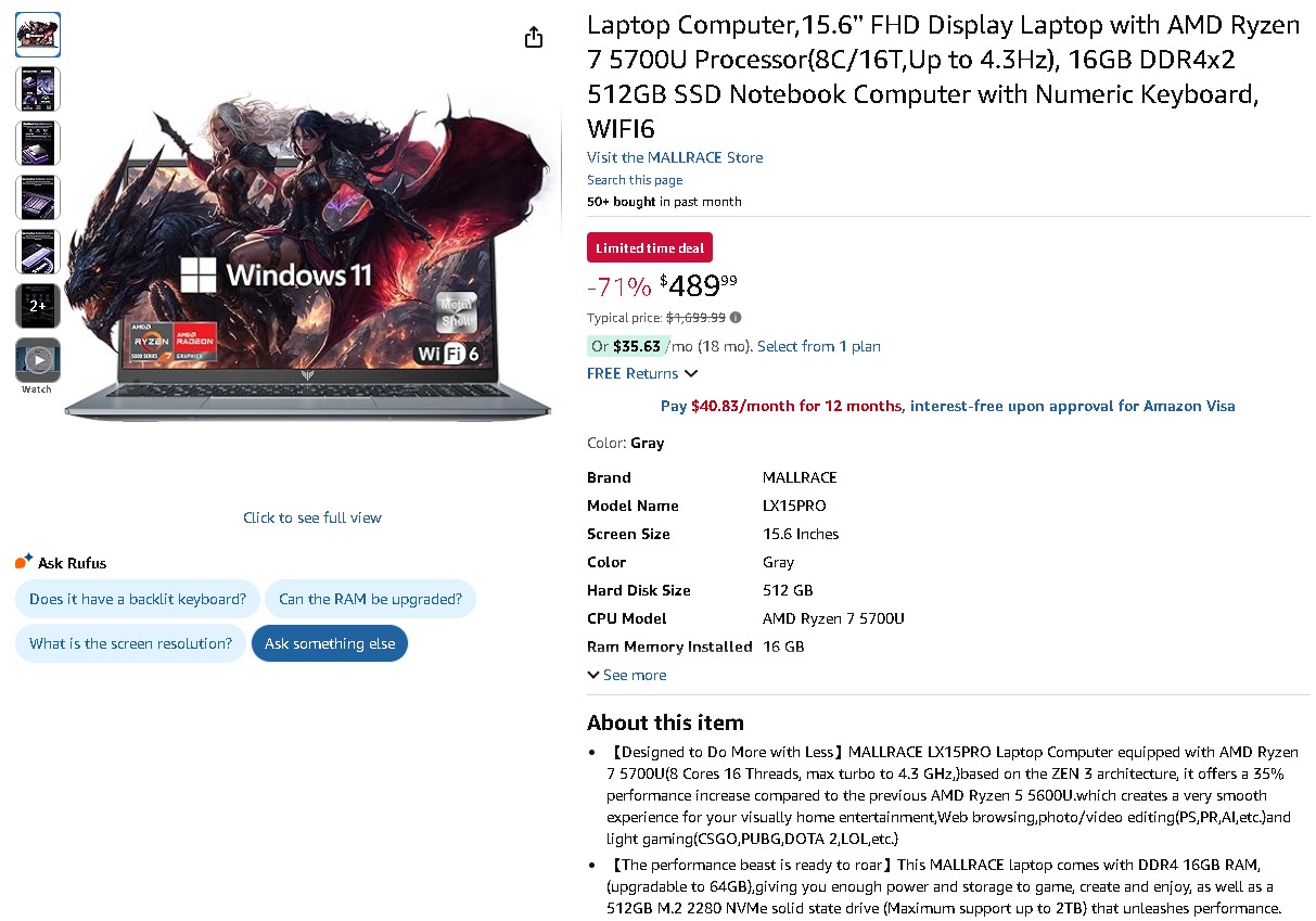 The high-performance MALLRACE LX15PRO Laptop is currently available for an absolutely mind-blowing $489.99, catastrophically slashed from $1,699.99 – an absolutely staggering 71% reduction! Over $1,200 in savings on premium laptop technology.