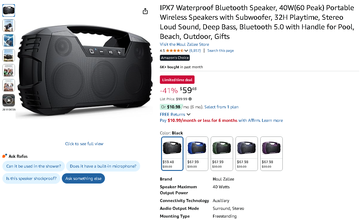 The Houl Zallee IPX7 Waterproof Bluetooth Speaker is currently priced at $59.48 down from $99.99 – an impressive savings of 41%! This substantial discount brings professional-grade outdoor audio technology within reach of every music lover and outdoor enthusiast.