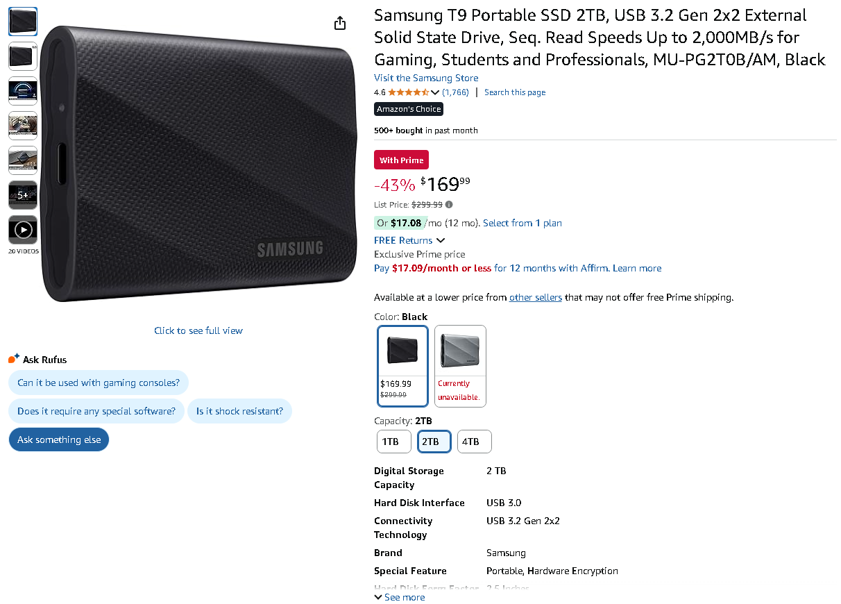 The Samsung T9 Portable SSD 2TB is currently offered for $169.99 reduced from $299.99 – delivering massive savings of 43%!