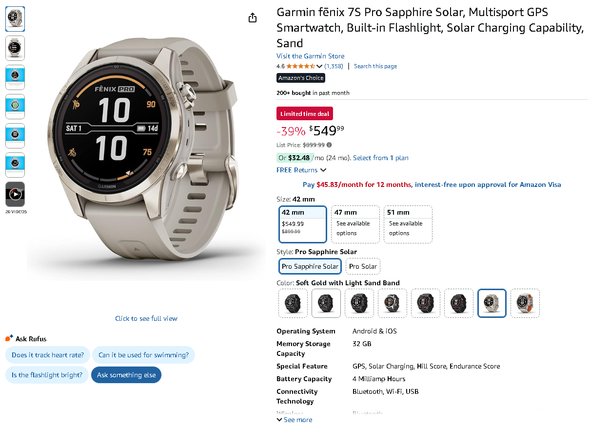 Secure the Garmin fēnix 7S Pro Sapphire Solar at Peak Value on Amazon.com