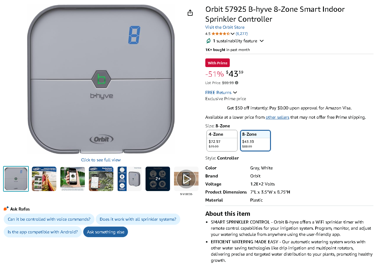 The intelligent Orbit 57925 B-hyve 8-Zone Smart Indoor Sprinkler Controller is currently priced at $43.39, substantially slashed from $88.99 – an extraordinary savings of 51%! Professional-grade irrigation automation reaches budget-friendly territory.