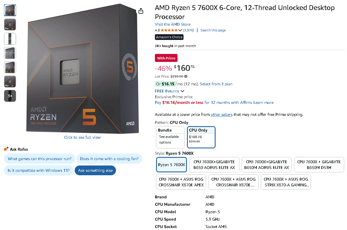 Lock In the AMD Ryzen 5 7600X 6-Core at Rock-Bottom Pricing on Amazon.com