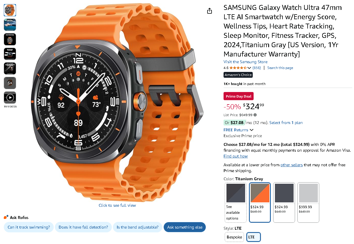 The Samsung Galaxy Watch Ultra 47mm is presently priced at $324.99, drastically marked down from $649.99 – delivering a massive 50% discount! A price drop that makes premium wearable technology incredibly accessible.
