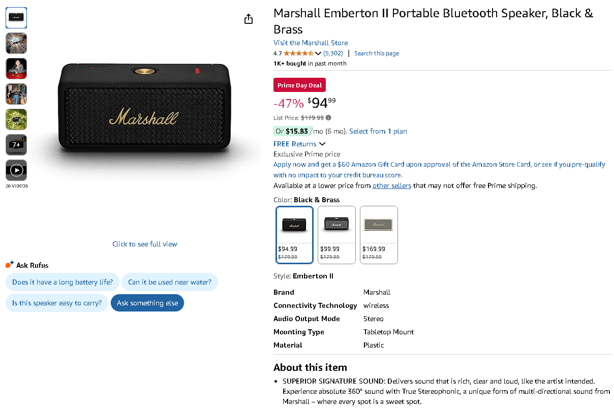 The Marshall Emberton II Portable Bluetooth Speaker is currently available for $94.99, reduced from $179.99 - delivering impressive $85 savings (47%)! This substantial discount brings premium Marshall audio within reach of every music enthusiast.