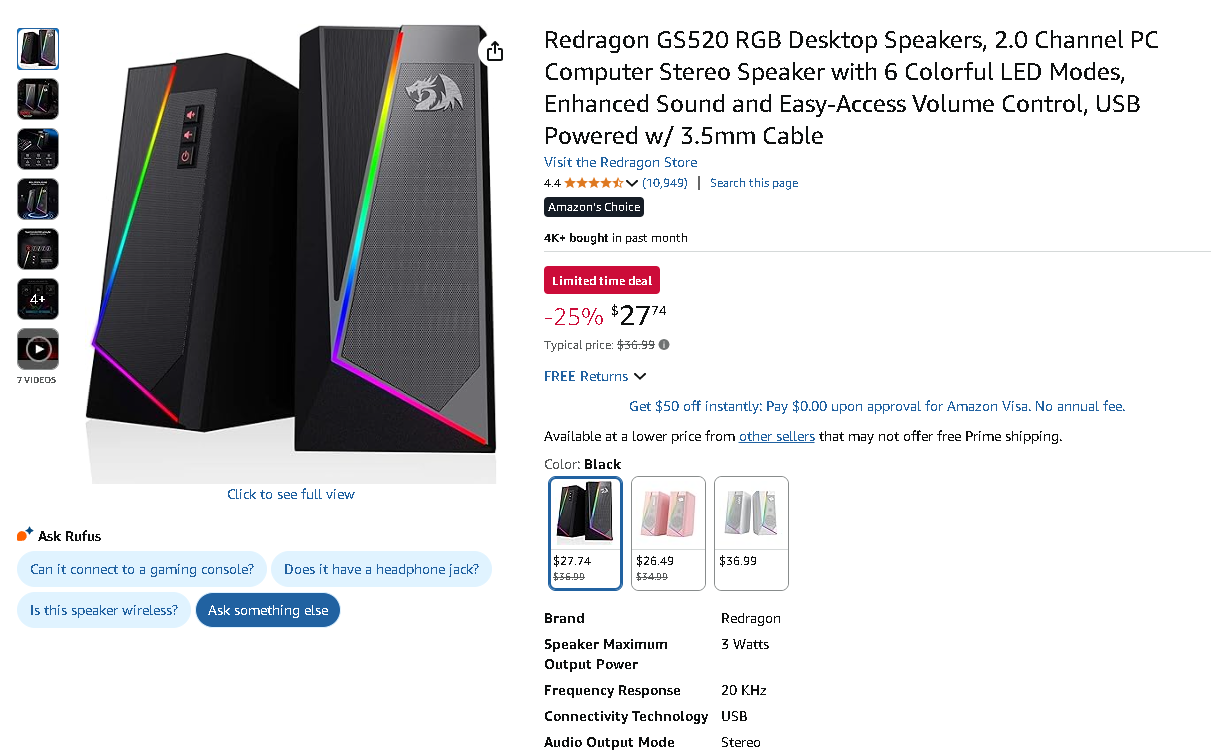 The stylish Redragon GS520 ANVIL RGB Desktop Speakers are now priced at $27.74, down from the typical price of $36.99. This solid 25% discount makes high-quality desktop audio with RGB lighting more affordable than ever.