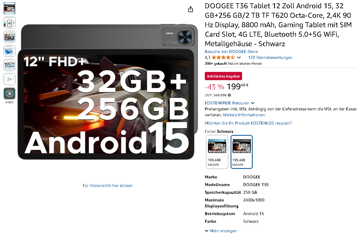 DOOGEE T36 Android 15 Tablet - Massive 150€ price reduction at Amazon!