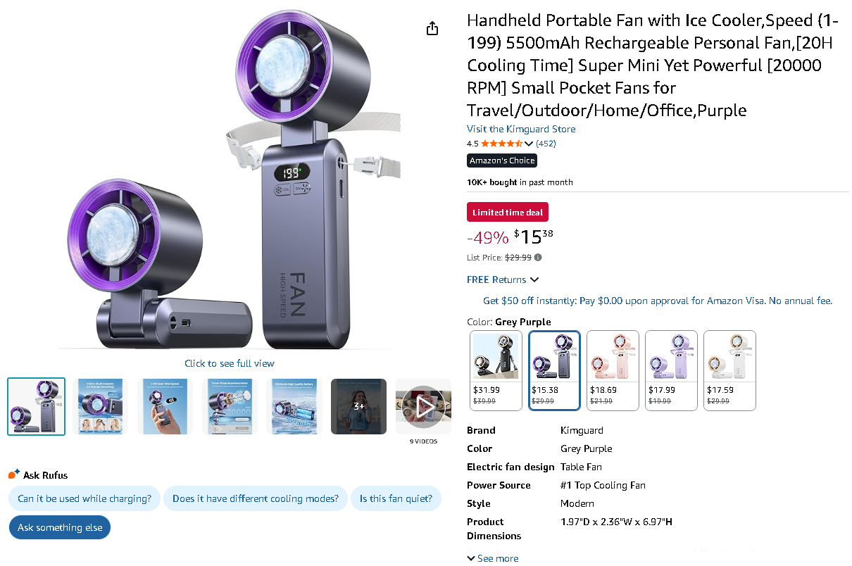 With its revolutionary ice cooler technology, marathon battery life, and substantial $14.61 price reduction, the Kimguard fan represents incredible value for anyone serious about staying cool. This nearly 50% discount makes advanced personal cooling technology more affordable than ever!