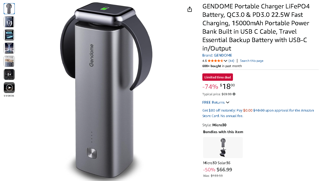 The GENDOME Portable Charger is currently offered for $18.00, slashed from $69.99 - representing a massive 74% markdown! This pricing brings revolutionary battery technology within everyone's budget.