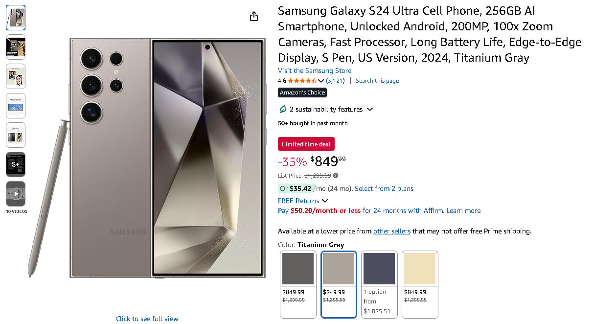 Score the Samsung Galaxy S24 Ultra at an Incredible Price on Amazon.com