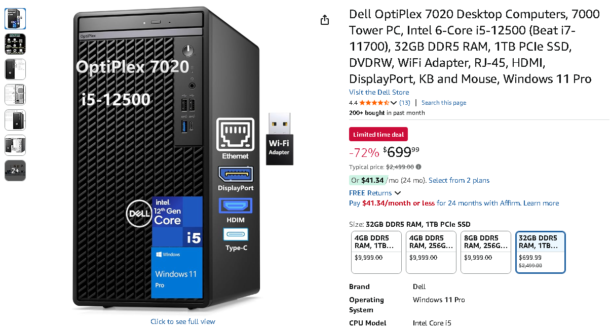 Secure the Dell OptiPlex 7020 at an Exceptional Value on Amazon.com