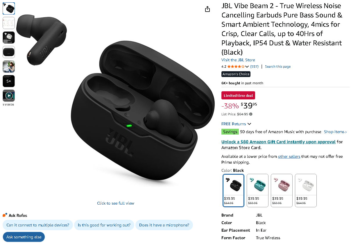 This substantial price reduction makes premium JBL audio technology accessible to budget-conscious consumers without sacrificing essential features. The Vibe Beam 2 strikes an optimal balance between performance, convenience, and value, establishing itself as the smart choice for anyone seeking flagship earbud capabilities without the premium price tag.