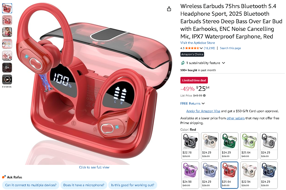 The Aptkdoe Wireless Earbuds are available right now for $25.64 compared to the regular $49.99 retail price – a generous 49% discount!