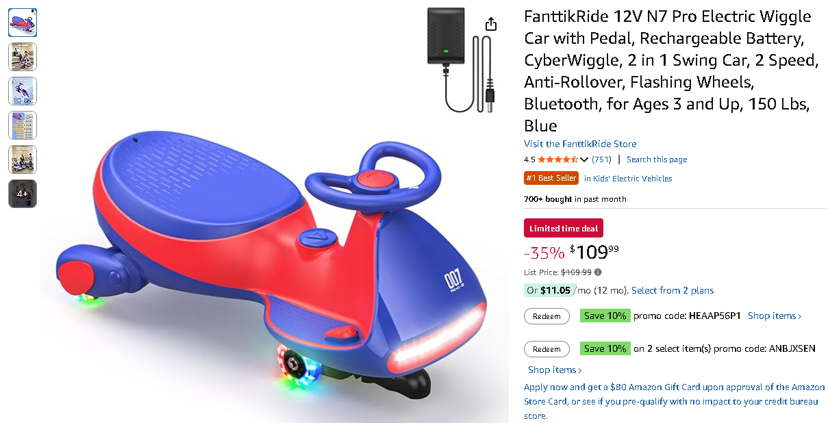 The innovative FanttikRide N7 Pro Electric Wiggle Car is currently offered for $109.99, reduced from $169.99 – representing significant savings of 35%!