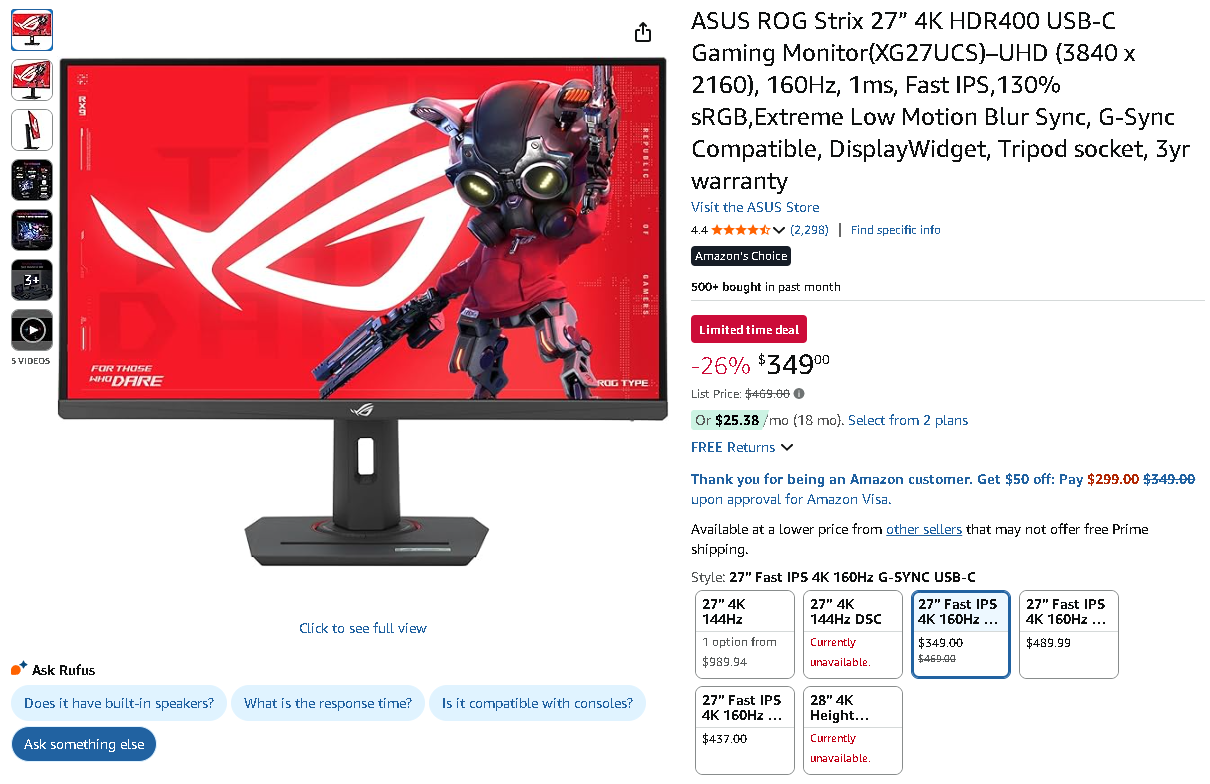 ASUS ROG Strix 27" 4K Gaming Monitor – Now 26% Off!