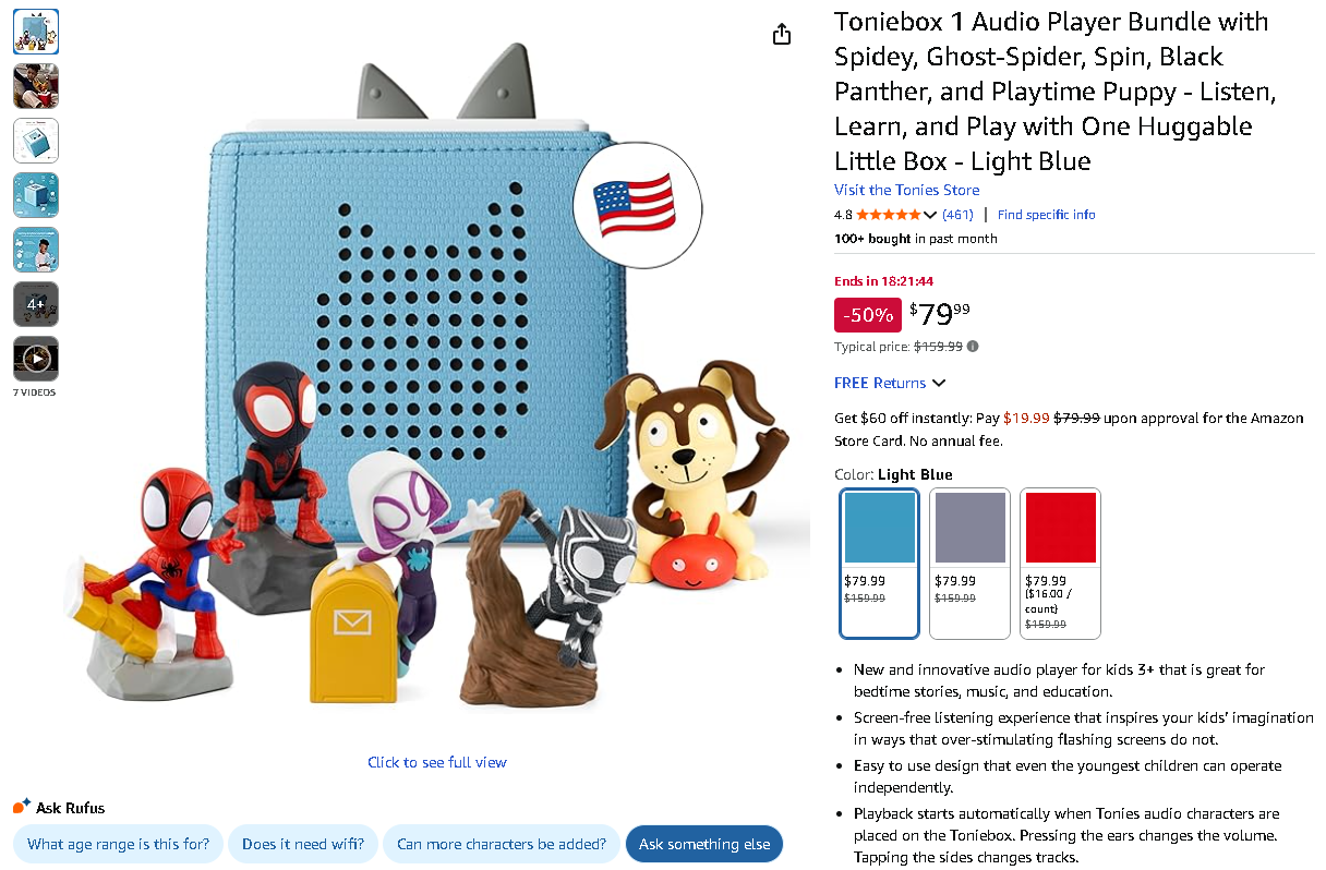 The complete Toniebox 1 Audio Player Bundle is currently available for $79.99, down from $159.99 – that's a massive 50% discount!
