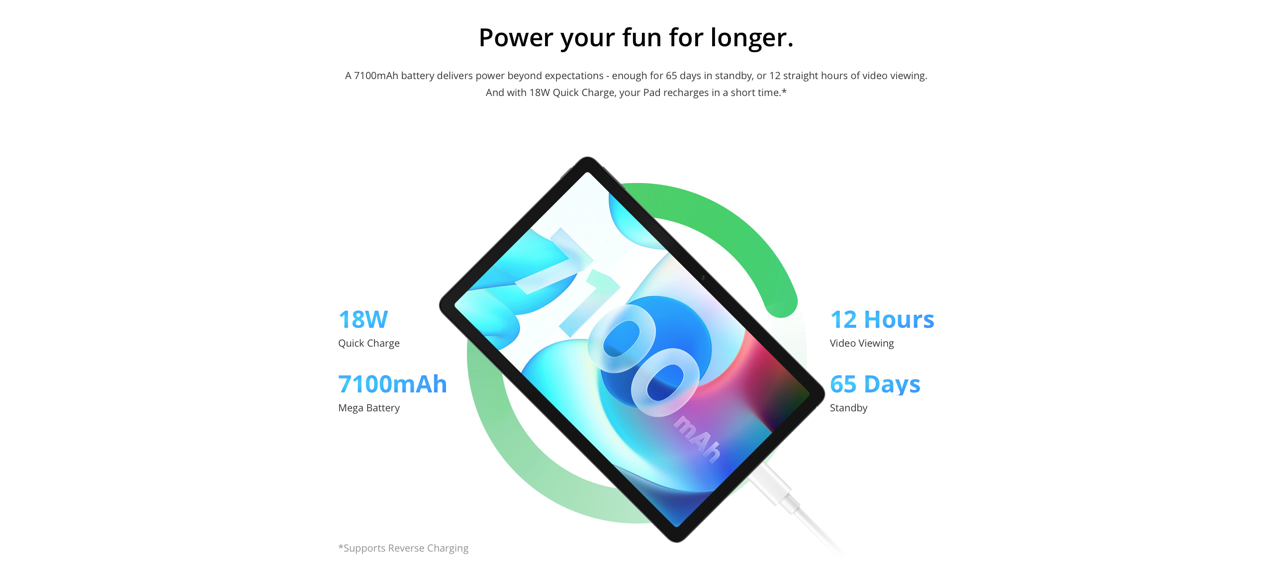 Inside, Realme Pad has a MediaTek Helio G80 processor paired with 3/4GB of RAM and 32/64GB of ROM. If necessary, the built-in storage can be expanded with a microSD card. The novelty is powered by a 7100mAh battery. It is charged via USB-C port using an 18W power supply. The tablet supports reverse charging.
