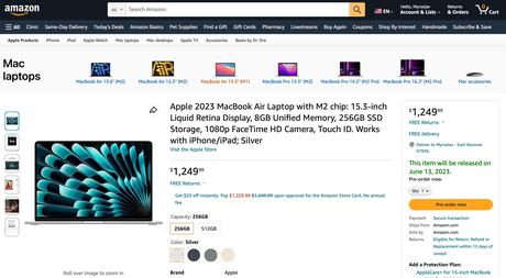 15" MacBook Air with M2 processor available for pre-order from Amazon
