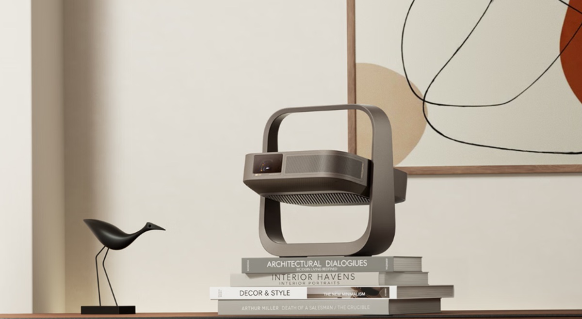 The projector runs on the Google TV platform and can be used outside the home