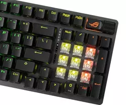 ASUS ROG Strix Scope II 96 Wireless is an interesting gaming keyboard for those who are looking for a smaller model but don't want to give up the additional number pad. Thanks to the 96% form factor, the keyboard is about 5 cm narrower than standard models. But this led to the use of a rather unusual layout. ASUS ROG Strix Scope II 96 Wireless is equipped with high-quality PBT plastic keycaps and excellent ROG NX Snow branded switches that are lubricated from the factory and support hot-swapping. To this should be added effective proprietary stabilisers, as well as the use of foam and additional shock absorption pads to reduce noise. The keyboard supports connection via cable, Bluetooth and radio and has a very good battery life. Additional advantages include a multi-function key and a scroll wheel. ASUS ROG Strix Scope II 96 Wireless has a sturdy and reliable design and RGB backlighting for those who like bright keyboards. The only factor that may deter you from buying the keyboard (apart from the unusual layout) is its high price. It's hard to find direct competitors, as there is nothing like it in this form factor. If you focus on the price and the ability to replace switches, then among the popular brands is Logitech G715, but it does not have an additional number pad. Or you can look at models from more specialised manufacturers like Keychron.
