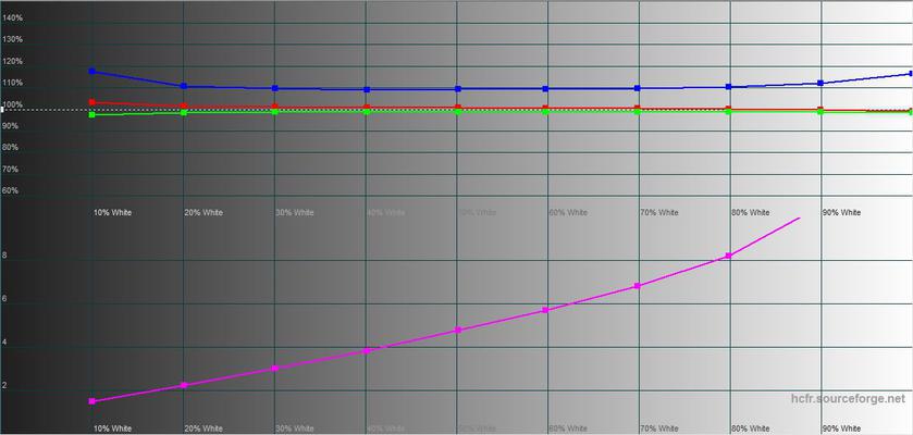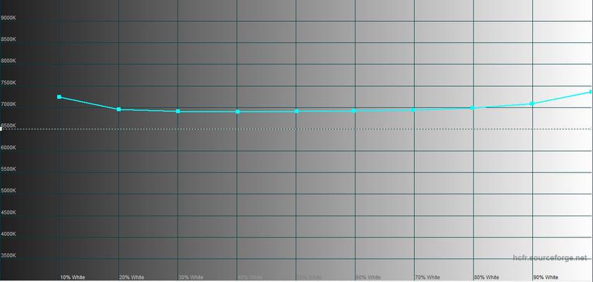 Hardware measurements showed that a rather budget matrix is used. The maximum brightness is 252.085 cd/m2, the black field brightness is 0.275 cd/m2, and the static contrast is 917:1. The colour gamut is significantly narrower than the sRGB space. At the same time, it's worth noting that the display calibration is quite accurate: the colour temperature is about 7000K with a reference value of 6500K, and all other indicators are also close to the reference values.