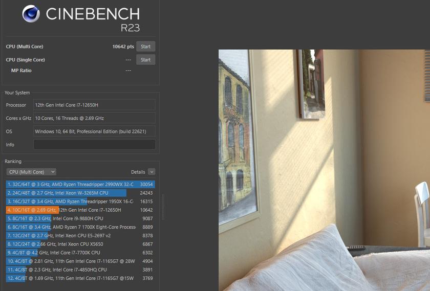 | Processor. | Intel Core i7-12650H (2.3-4.7 GHz), 10 cores (6P+4E), 16 threads, (Alder Lake, Intel 7) |