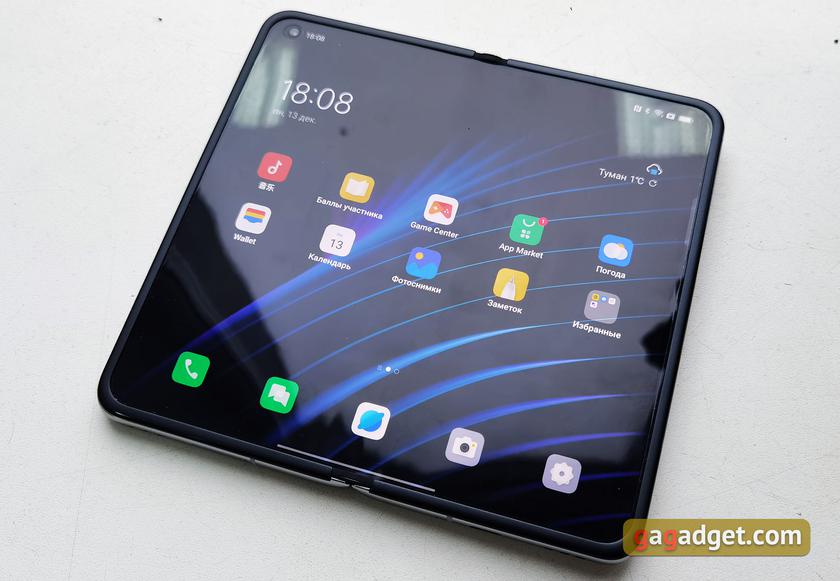 Most importantly, OPPO managed to get rid of the fold almost completely. Visually, even at an angle, it is almost impossible to see any unevenness. Only tactilely you can feel the slightest bit. This is really cool, both aesthetically and technologically.
