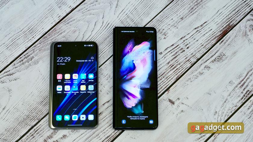 When developing OPPO Find N, the company deliberately made the screen almost square, so that when the smartphone is open it is not necessary to unfold it. Galaxy Fold3 is more commonly used in landscape orientation, especially when watching videos. And, of course - the fold, which is really practically invisible for Oppo.