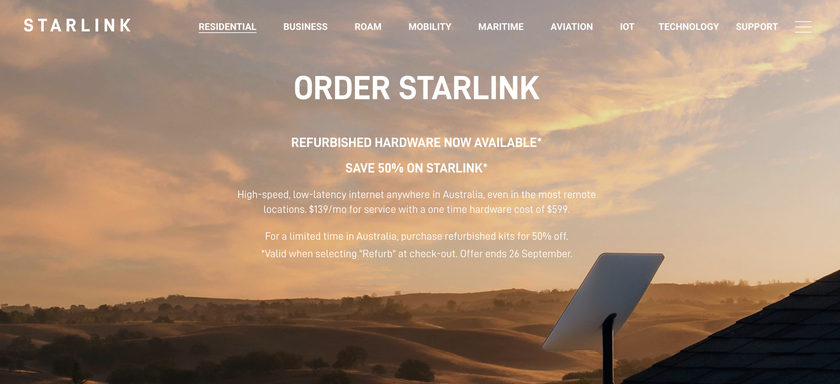 So far, sales of the refurbished terminals have only begun in Australia. The cost is $299 instead of $599. We have no information on whether SpaceX plans to sell refurbished equipment in other countries.