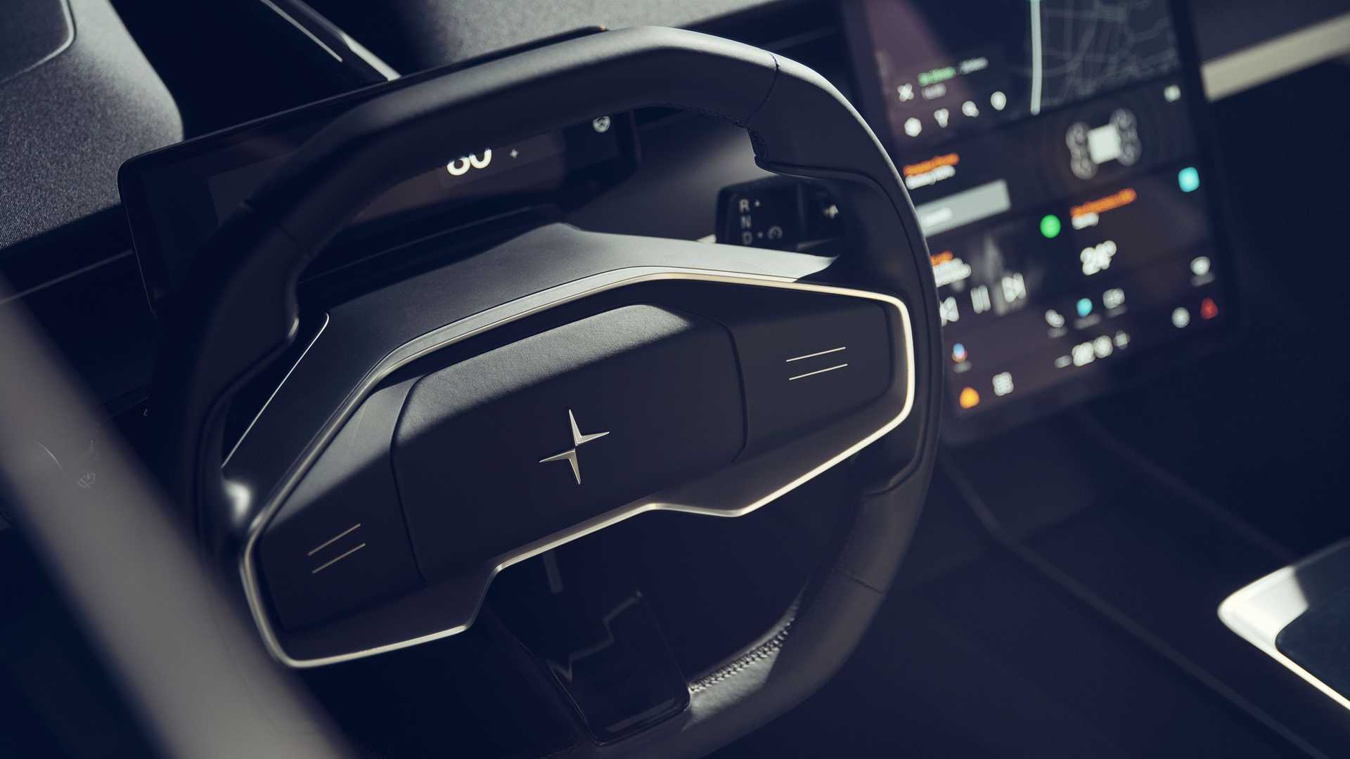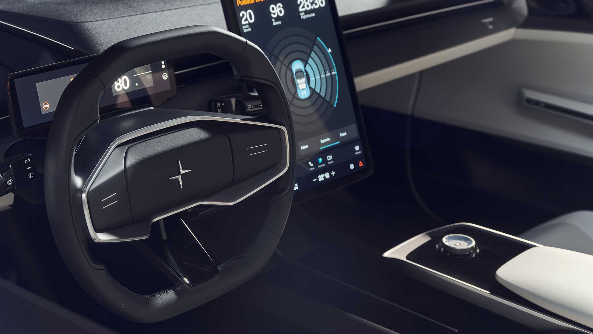 The concept car has a 15" touch screen. The multimedia system is based on Android Automotive. Instead of rearview mirrors, cameras are used. In the back of the vehicle there is a drone. The drone is designed by Hoco Flow. It can follow Polestar O2 in autonomous mode. The maximum flight speed is 90 km/h. The drone is equipped with a camera, and the video is broadcast to the display in the car.