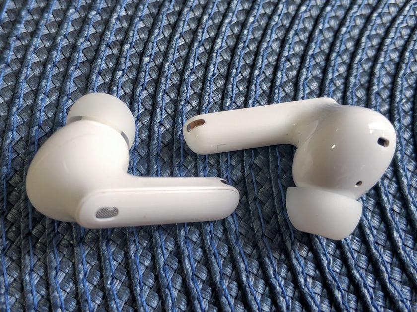 Le microphone parlant est situé au bas de la jambe entre les plots de contact pour le chargement. Deux autres microphones sont situés en haut, l'un "regarde" vers l'extérieur et le second directement dans l'oreille, à côté du haut-parleur, ils sont utilisés pour mettre en œuvre la réduction du bruit. Il y a aussi un capteur qui détermine que l'écouteur est dans l'oreille. Oui, il peut être trompé avec un doigt. Lorsqu'elles sont allumées, éteintes, jumelées et connectées, les notifications vocales sont entendues d'une voix féminine en anglais, qui sont accompagnées de notifications sonores.