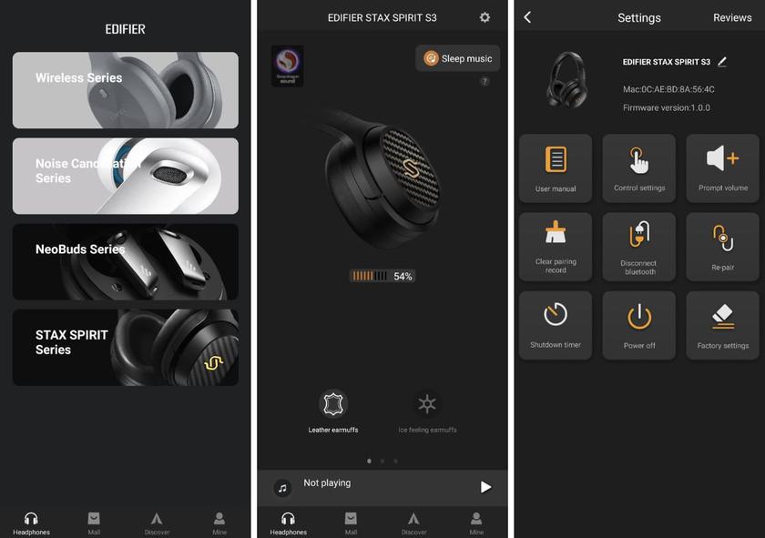 Plus la classe du casque est élevée, plus il est difficile de tirer des conclusions sur la qualité de son son, car toutes les préférences sont individuelles et l'expérience d'une autre personne ne vous aidera pas dans votre choix - avant d'acheter, il est extrêmement souhaitable d'écouter le casque (surtout s'il est relativement cher). En parlant du Edifier STAX Spirit S3, nous pouvons dire que la technologie magnétique planaire fonctionne - le son est propre. J'ai particulièrement apprécié les fréquences moyennes. Mais le plein potentiel des écouteurs est révélé si vous utilisez un DAC - dans ce cas, leur son est proche de la perfection (du moins pour mes oreilles). Quant aux technologies Qualcomm qui affectent le son (aptX dans toutes ses variantes et le son Snapdragon), j'ai aimé les options de personnalisation du son fournies par l'application Edifier Connect, que je recommande vivement à tout acheteur de ces écouteurs.
