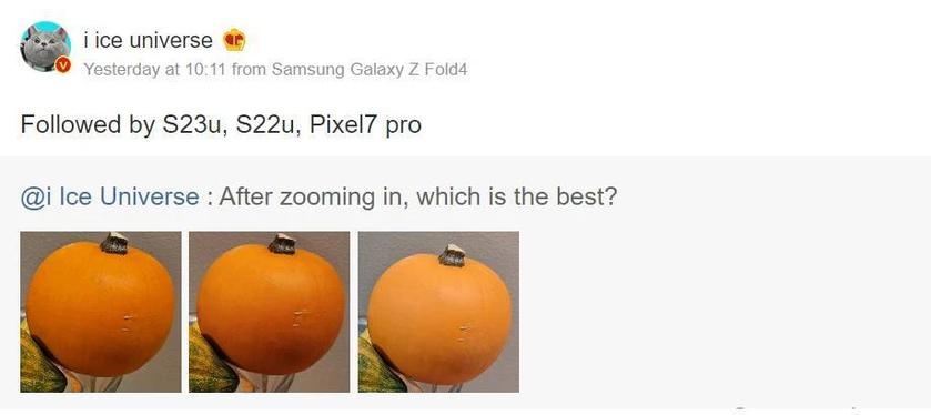Ice Universe a partagé la photo sur le réseau social Weibo. L'initié a également pris des photos similaires du Galaxy S22 Ultra et du Pixel 7 Pro. Les trois appareils ont utilisé un module principal avec une ouverture f/1,7 et un zoom numérique.