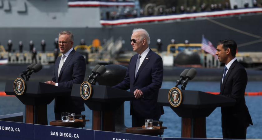 L'accord a été signé par les membres du partenariat AUKUS. Il s'agit du président américain Joe Biden, du premier ministre britannique Rishi Sunak et du premier ministre australien Anthony Albanese.