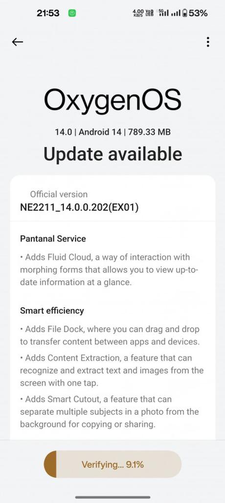 Il s'agit du OnePlus 10 Pro. La mise à jour est sortie avec le numéro de build NE2211_14.0.0.202(EX01). Le firmware pèse 790 Mo et il a déjà commencé à être reçu par les utilisateurs en Inde qui ont participé au test du logiciel. La mise à jour pour tous les propriétaires de OnePlus 10 Pro sera publiée dans les prochains jours.