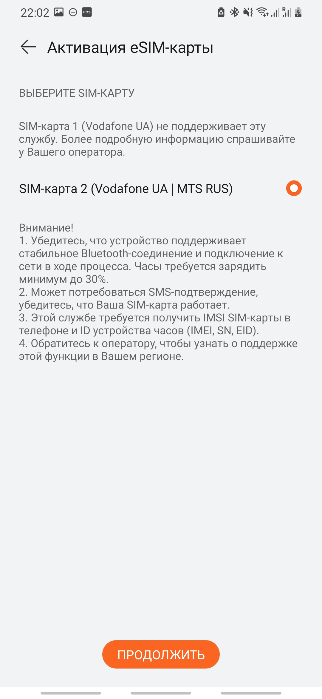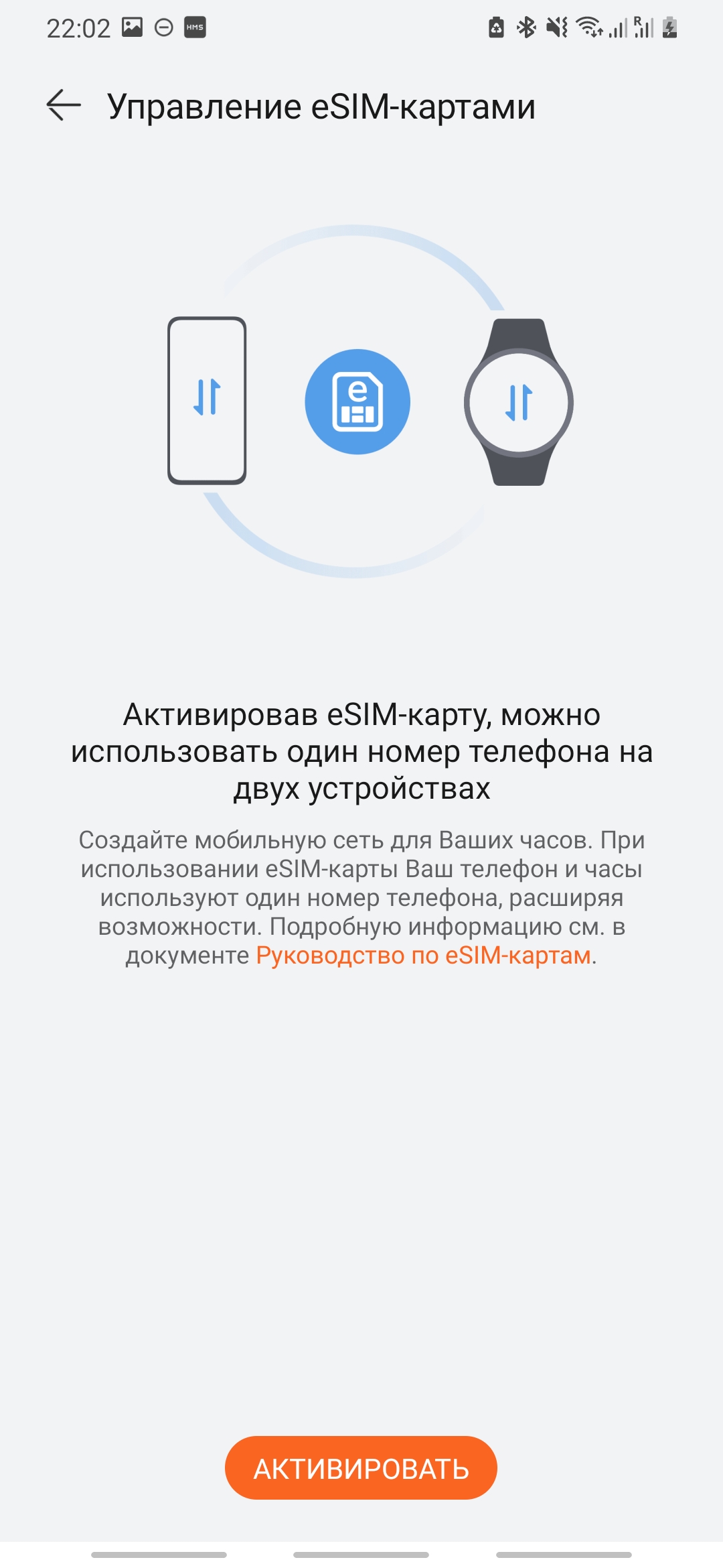 Support eSIM. La montre peut recevoir des appels, etc. sans téléphone, au même numéro. La connexion est très intuitive, mais ne fonctionne qu'avec les cartes SIM qui prennent en charge cette fonction. En Ukraine, il n'y a pas encore de support pour la technologie qui permet de copier le numéro pour l'eSIM. Dans les autres pays où il existe, le service doit être connecté par l'intermédiaire de l'opérateur.