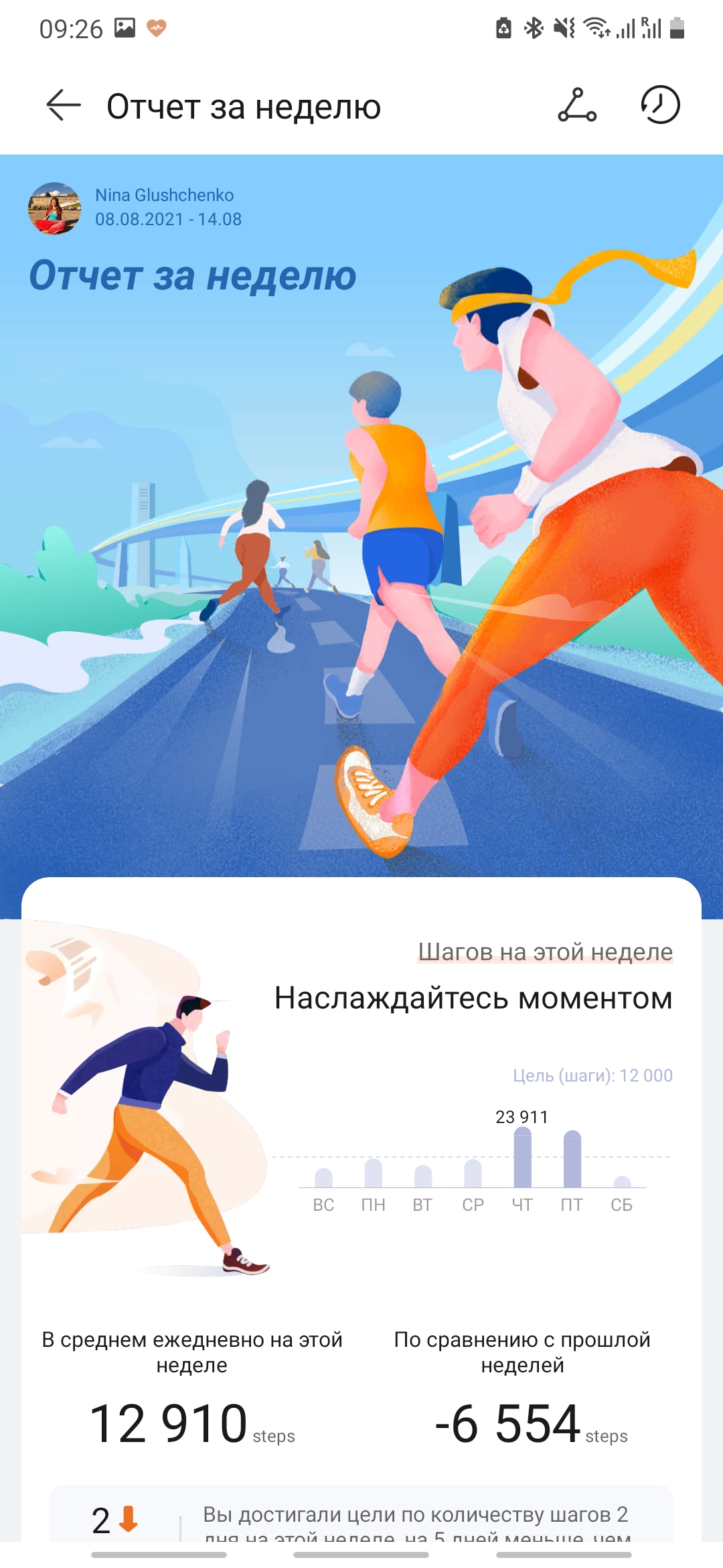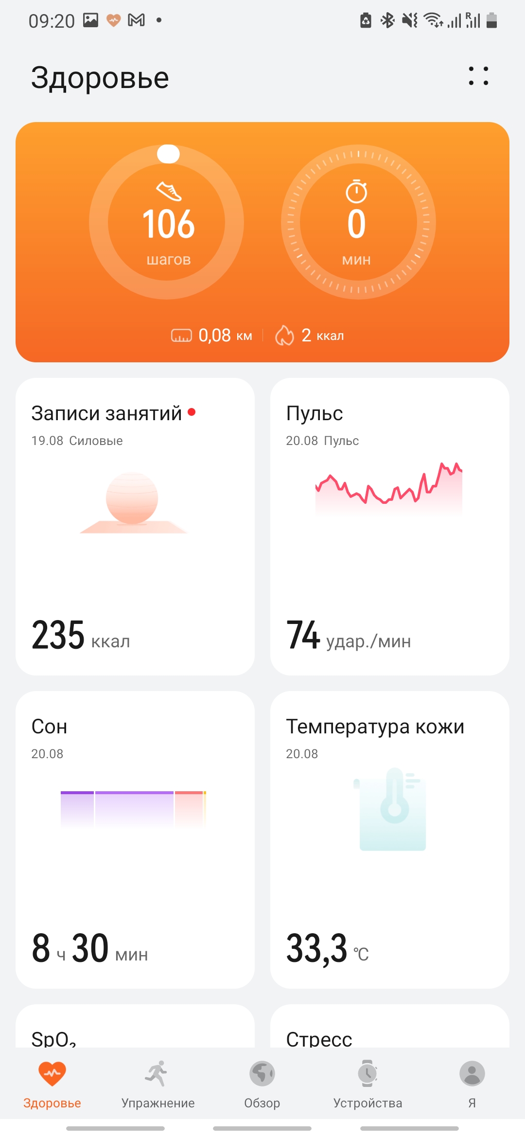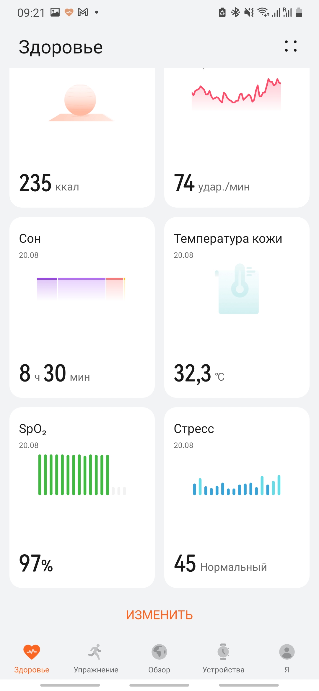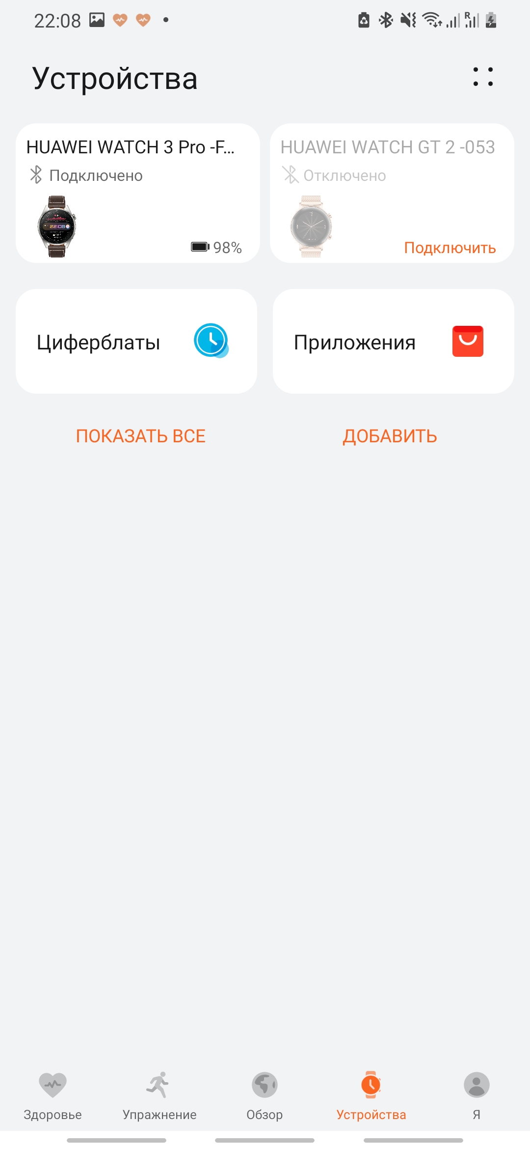 L'interface de l'application est. Il a été considérablement mis à jour, avec de nouvelles fonctionnalités. Au fait, pour l'instant, vous ne pouvez obtenir que la dernière version avec laquelle la montre fonctionne à partir de l'AppGallery.