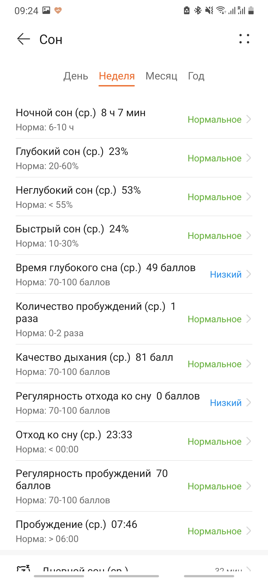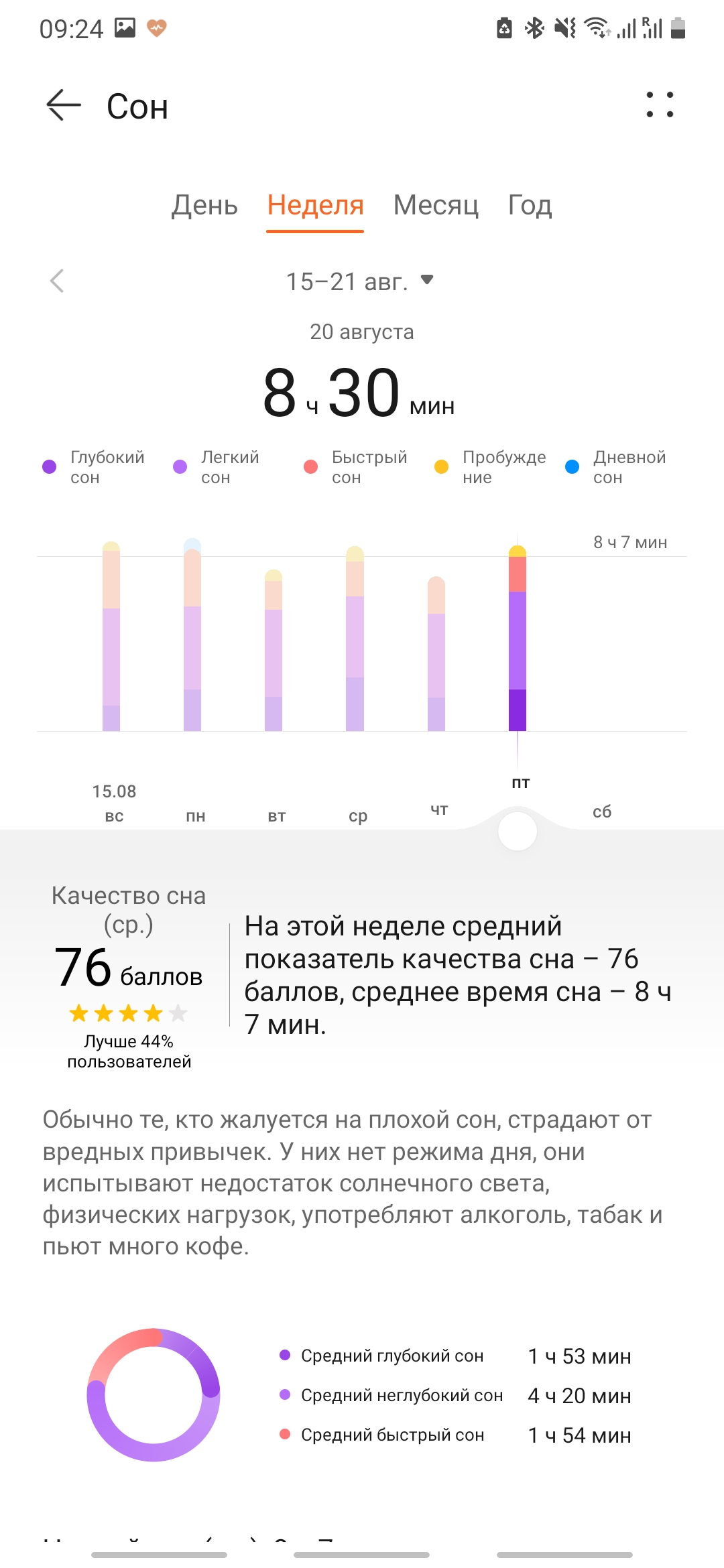 Les alertes de santé dans le menu de l'application sont devenues plus intelligentes et plus détaillées. Surtout dans les domaines qui concernent le sommeil. L'utilisateur obtient maintenant en premier lieu non seulement les chiffres bruts, mais aussi leur explication. La montre m'a également réprimandé parce que mes habitudes de sommeil étaient de nouveau déréglées : je me suis couché pendant plusieurs jours d'affilée, je me suis réveillé plus que d'habitude et j'ai mal dormi.
