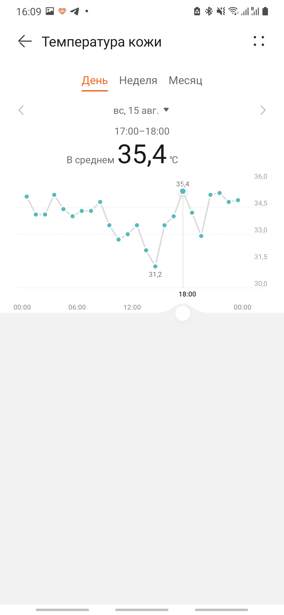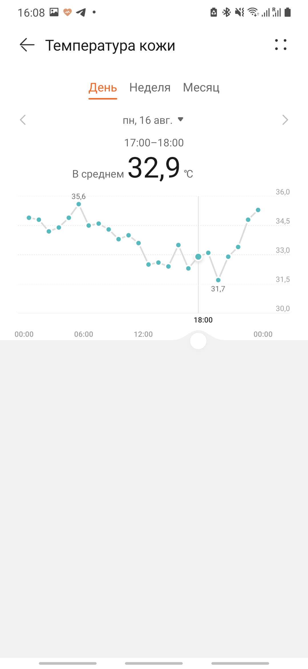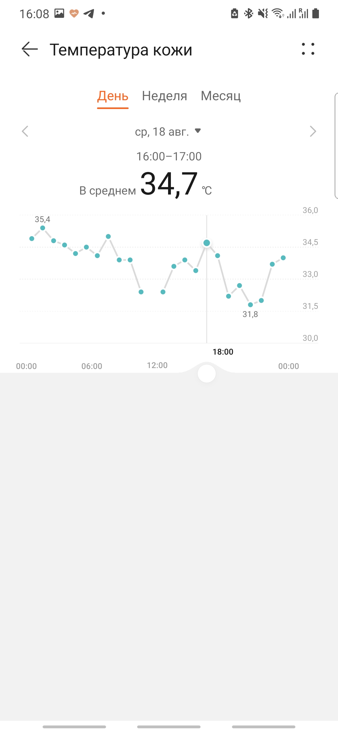 Je ne peux en tirer qu'une seule conclusion. La montre mesure probablement la température plus correctement dans mon sommeil, lorsque je suis aussi immobile que possible. Et elle se rapproche naturellement du réveil. Pendant la journée, surtout lorsque je bouge beaucoup et intensément, les problèmes commencent parce qu'il se déplace d'avant en arrière sur ma main.