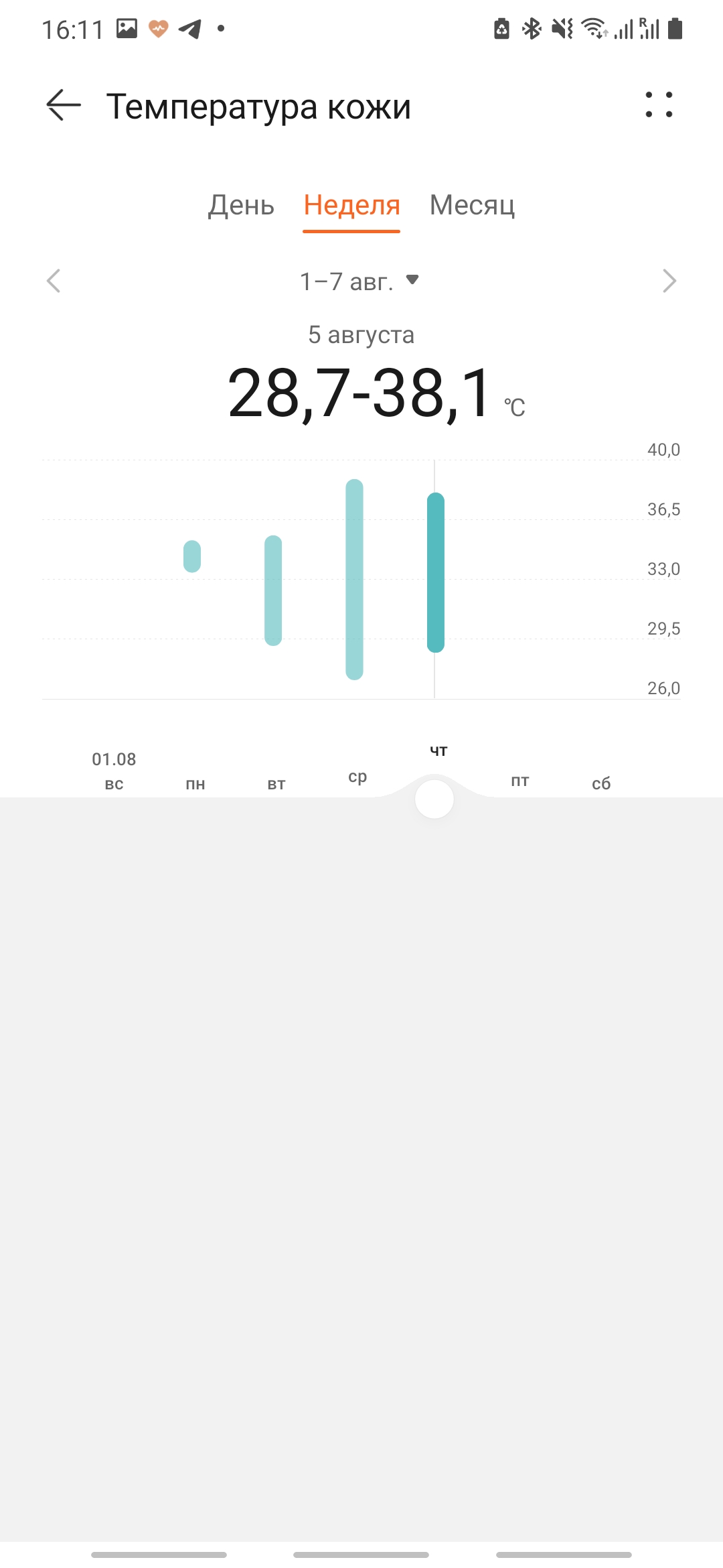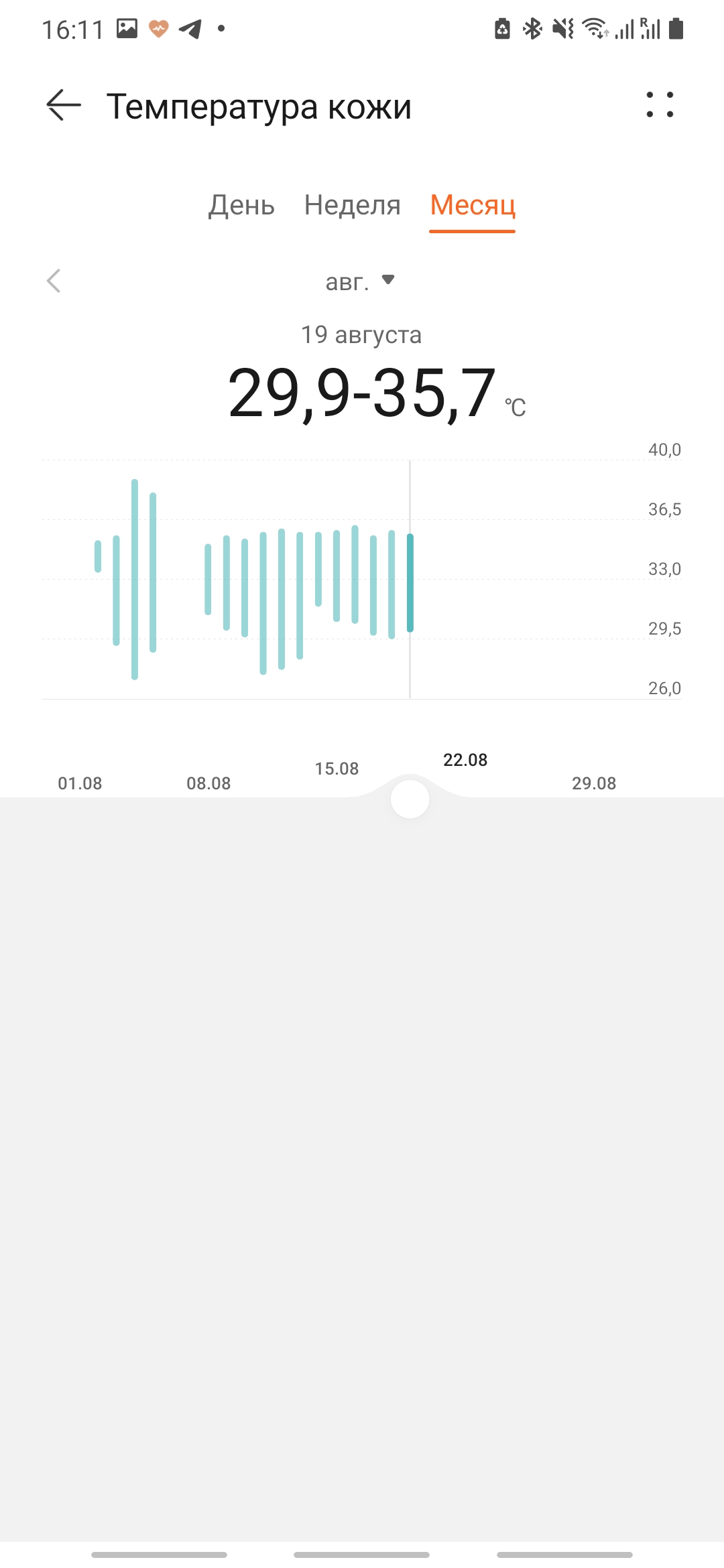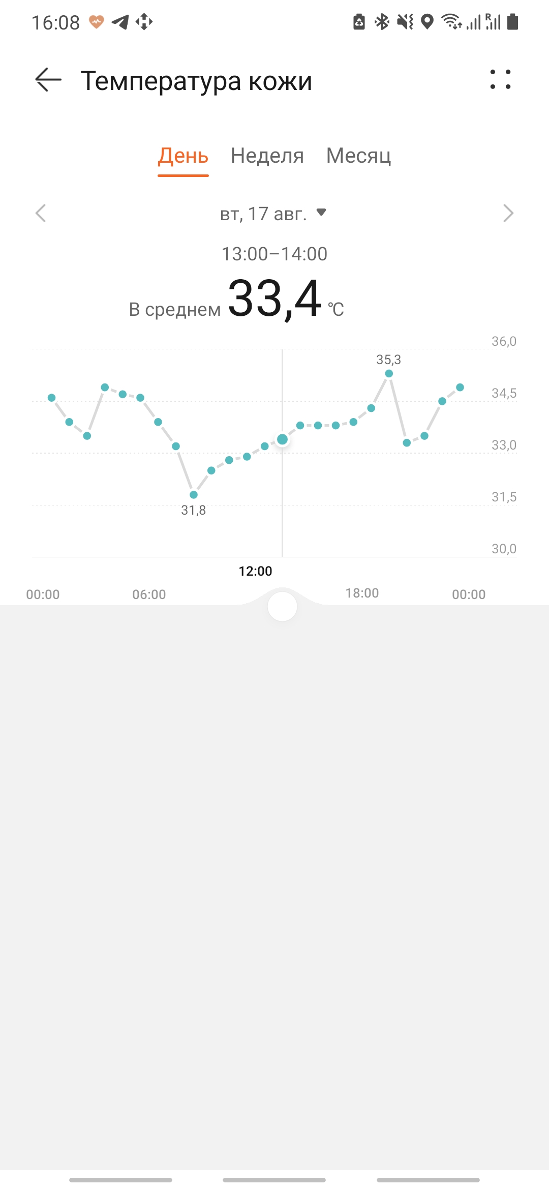 Je ne peux en tirer qu'une seule conclusion. La montre mesure probablement la température plus correctement dans mon sommeil, lorsque je suis aussi immobile que possible. Et elle se rapproche naturellement du réveil. Pendant la journée, surtout lorsque je bouge beaucoup et intensément, les problèmes commencent parce qu'il se déplace d'avant en arrière sur ma main.
