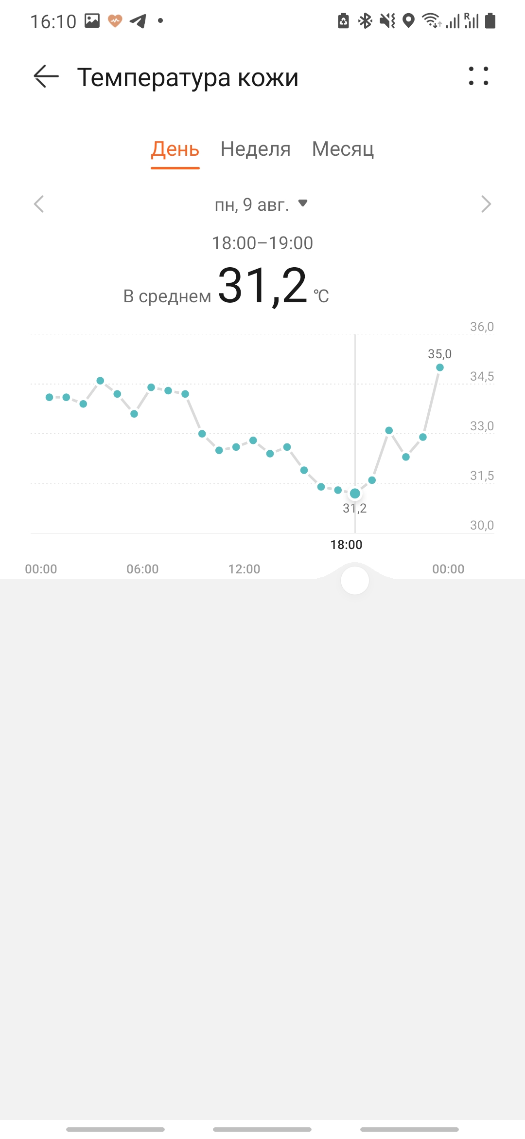 Il existe un autre fait curieux dont on a surtout parlé à la suite de l'épidémie de coronavirus. Une personne a une température élevée la nuit pendant quelques jours avant l'apparition des symptômes, car le corps combat le virus. Donc, en testant l'horloge, j'ai attrapé une infection respiratoire aiguë, mais en regardant les graphiques, il n'y a aucun moyen de le savoir.