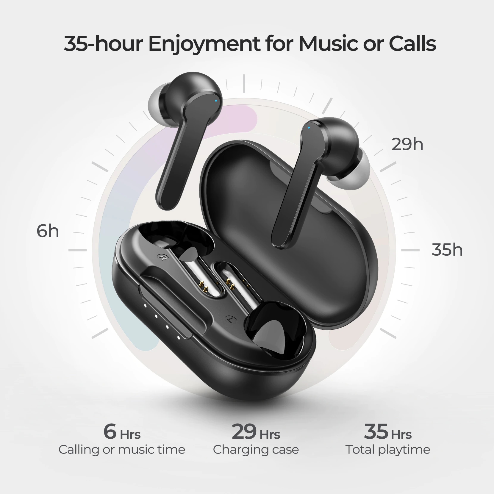 En termes d'autonomie, les écouteurs peuvent tenir jusqu'à 6 heures sur une seule charge. L'affaire portera ce chiffre à 35 heures. Il se recharge via le port USB-C.
