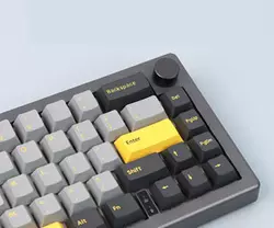L'Epomaker EK68 est un clavier à 65% avec 66 touches et un encodeur rotatif dans le coin supérieur droit, qui est responsable du réglage du volume lors du défilement et de la mise en sourdine lorsque l'on appuie dessus. Il présente des coupes de défilement claires et agréables. Outre l'absence d'un pavé numérique supplémentaire, le clavier présente plusieurs autres caractéristiques importantes. Il ne dispose pas de la ligne F, ni des touches PrtScr, Scroll Lock, Pause, Home, End, ~, Insert. Toutes ces touches sont disponibles par le biais de combinaisons avec Fn. Par exemple, les boutons F - Fn + rangée de 1 à +. Le bloc de navigation n'est pas séparé des autres boutons, c'est pourquoi la touche Shift droite est légèrement plus courte. Les boutons Del, PgUp et PgDn sont situés verticalement au-dessus de la flèche droite. Il y a deux diodes électroluminescentes entre la flèche gauche et Fn. Il n'y a pas d'indicateur séparé pour le verrouillage des majuscules, mais l'indication est implémentée par le rétroéclairage du bouton : il change de couleur. Il faut donc un certain temps pour s'habituer à cette disposition. Toutefois, les connaisseurs de ces modèles compacts savent généralement à quoi s'en tenir. Les jeux ne devraient pas poser de problèmes : tous les boutons nécessaires sont présents.
