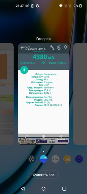 Identique aux autres smartphones Oneplus modernes. Le même Android 11 avec le shell OxygenOS 11.3. Le shell lui-même est traditionnellement exempt d'applications indésirables et inutiles. Gestionnaire de fichiers, assistant de migration, météo, calculatrice et quelques autres petites choses. Les applications installées sont sur les écrans horizontaux mais peuvent être enregistrées dans le menu déroulant en bas au lieu d'être affichées.