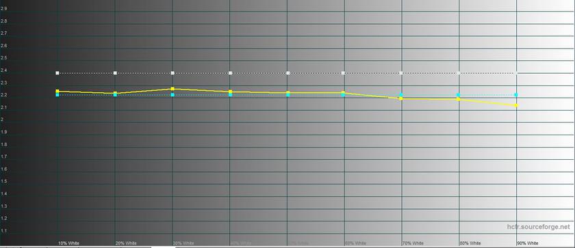 L'écran externe s'est avéré être encore légèrement plus lumineux que l'écran principal. En mode "Lumineux", la luminosité maximale était 490.342 cd/m2... En même temps, en termes de rendu des couleurs, la situation est similaire à l'écran interne dans le même mode.