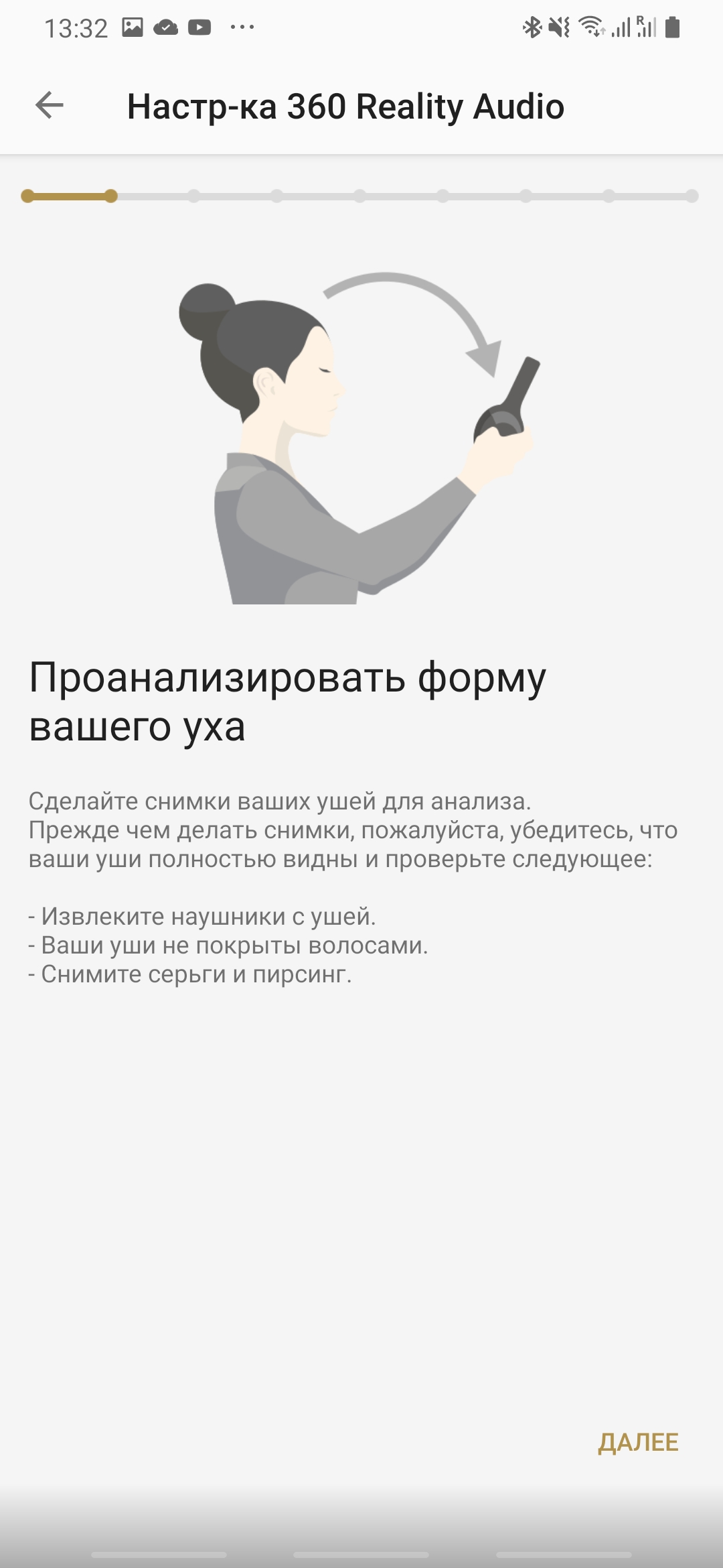 À mon avis, la caractéristique la plus cosmique de ces écouteurs Sony est la lecture 360 Reality Audio. Pour le configurer, l'application demande de prendre une photo des oreilles de l'utilisateur et de l'envoyer au serveur pour traitement. Ils disent qu'ils ajustent le son individuellement à l'oreille du propriétaire du casque ! Un problème - la fonction ne fonctionne qu'avec les applications nugs.net et 360 by Deezer. Les deux sont avec un abonnement payant. Nous n'avons donc pas réussi à le tester.