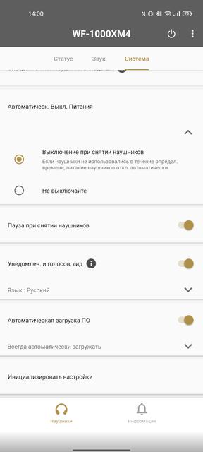 Tous les réglages des écouteurs sont effectués à l'aide de l'application Headphones Connect. En haut de l'application, la charge actuelle des écouteurs et de l'étui de chargement est affichée, ainsi que le codec utilisé. Le Sony WF-1000XM4 possède plus qu'assez de fonctionnalités et de capacités supplémentaires. Il existe un dispositif intéressant appelé "gestion adaptative des sons" : les écouteurs modifient automatiquement les paramètres en fonction de votre activité ou de votre emplacement actuel, y compris le suivi GPS. Bien sûr, il y a l'annulation du bruit et le réglage du mode de transparence avec le réglage du niveau et l'option de se concentrer sur votre voix. L'une des fonctions les plus utiles est le "chat". Les écouteurs reconnaissent que le porteur a entamé une conversation et activent automatiquement le mode pause et transparence. Lorsque la conversation se termine, la lecture reprend et l'annulation du bruit est activée (si elle l'était à l'origine). Chose extrêmement pratique : il n'est pas nécessaire de retirer les écouteurs de vos oreilles ou de faire la moindre manipulation supplémentaire. Bien sûr, il y a les égaliseurs, l'exhausteur de son propriétaire DSEE Extreme et la prise en charge du son surround virtuel à 360° (également disponible sur notre service Deezer). Pour obtenir le meilleur effet de réalité audio à 360°, l'application suggère d'analyser la forme des oreilles de l'utilisateur. Pour ce faire, vous devez prendre une photo de vos oreilles. Inutile de préciser que le firmware des écouteurs est également mis à jour via la même application.
