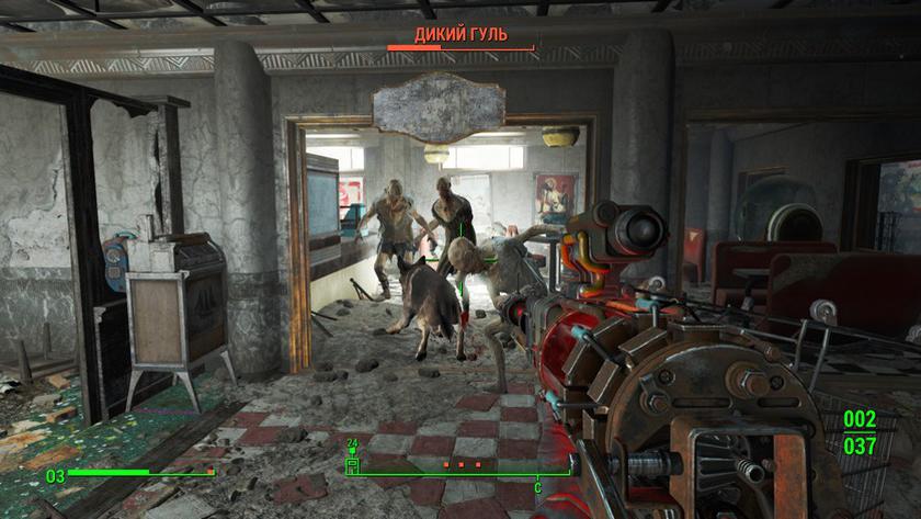 Вспомнив о гулях, а именно диких, стоит отметить, что в начале игры это, пожалуй, самый грозный и опасный соперник. Они стали толще, быстрее и чуточку сообразительнее (вероятно, начальный уровень одичалости и отупения). Разумные гули, скорее всего, в игре тоже есть, но лично мне они пока не встречались. Но это, вероятно, потому, что я малость увлекся градостроительной механикой Fallout 4.