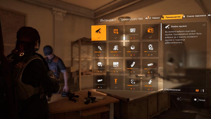 Открываются новые устройства за специальные очки, которые можно получить за выполнение миссий. У каждого гаджета есть несколько веток, так что придется много побегать, чтобы опробовать все модификации. Также есть очки технологий, за которые игрок покупает умения, вроде дополнительного слота для оружия или увеличение получаемого опыта за убийство в голову.