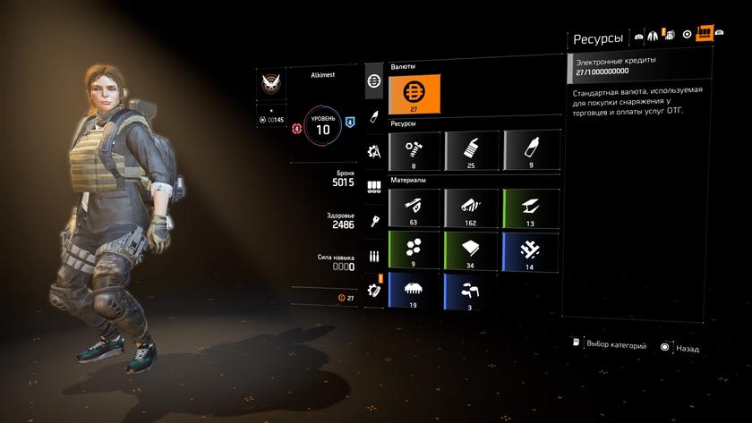 Исследуя каждый закоулок Вашингтона и выполняя поручения, игрок сможет получить ресурсы, которые пригодятся для крафта. Агент сможет создавать вооружение, экипировку и обвесы для оружия, которые улучшают его характеристики. Также ресурсы можно пустить на благое дело, передав часть накопленного поселениям на реализацию проектов по улучшению жизни людей.